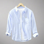 Omfavn kystens elegance med Simon | Strikket skjorte. Denne stribede sweater forener ubesværet stil med afslappet elegance. Fremstillet af førsteklasses hør, holder den dig kølig og komfortabel, samtidig med at den udstråler en afslappet kyststemning. Uanset om du tilbringer en dag på stranden eller tager på en afslappet udflugt, sørger Simon™ for, at du forbliver både elegant og afslappet.