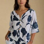 Berig din garderobe med den blomstrede Sanne™-bluse med knap foran, et tidløst stykke tøj, der ubesværet kombinerer elegance og komfort. Perfekt til afslappede dage og smarte aftener.