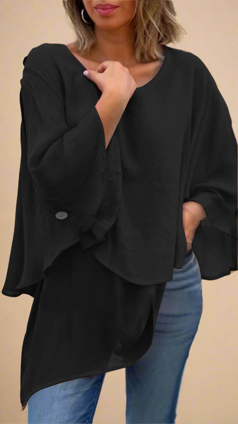 Dyk ned i ubesværet elegance med Lumiere™ Airy Layered Top. Dette alsidige stykke har en flydende silhuet og lagdelt charme, perfekt til at tilføje et strejf af ynde til dit hverdagsoutfit.Lumiere™ - Airy Layered Top
